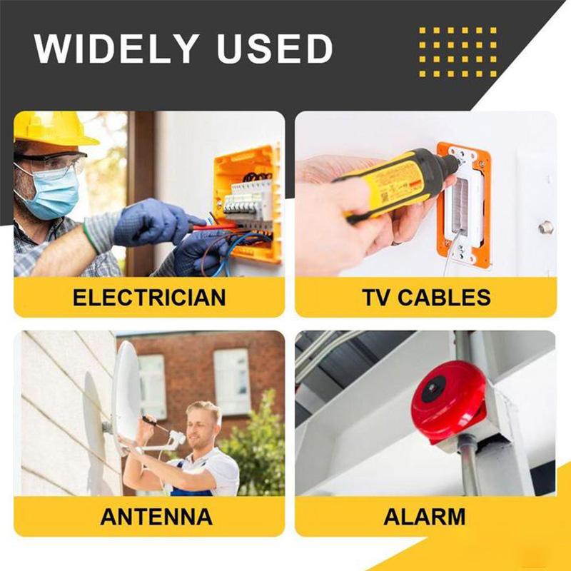 Make single gang or double gang rectangular holes in drywall for wall boxes such as high and low voltage tech, electrician, telephone, alarm/ security, CCTV/ IP camera, antenna, automation, home-theater including CEDIA members, HAVC, drywall contractor/ installer, etc.